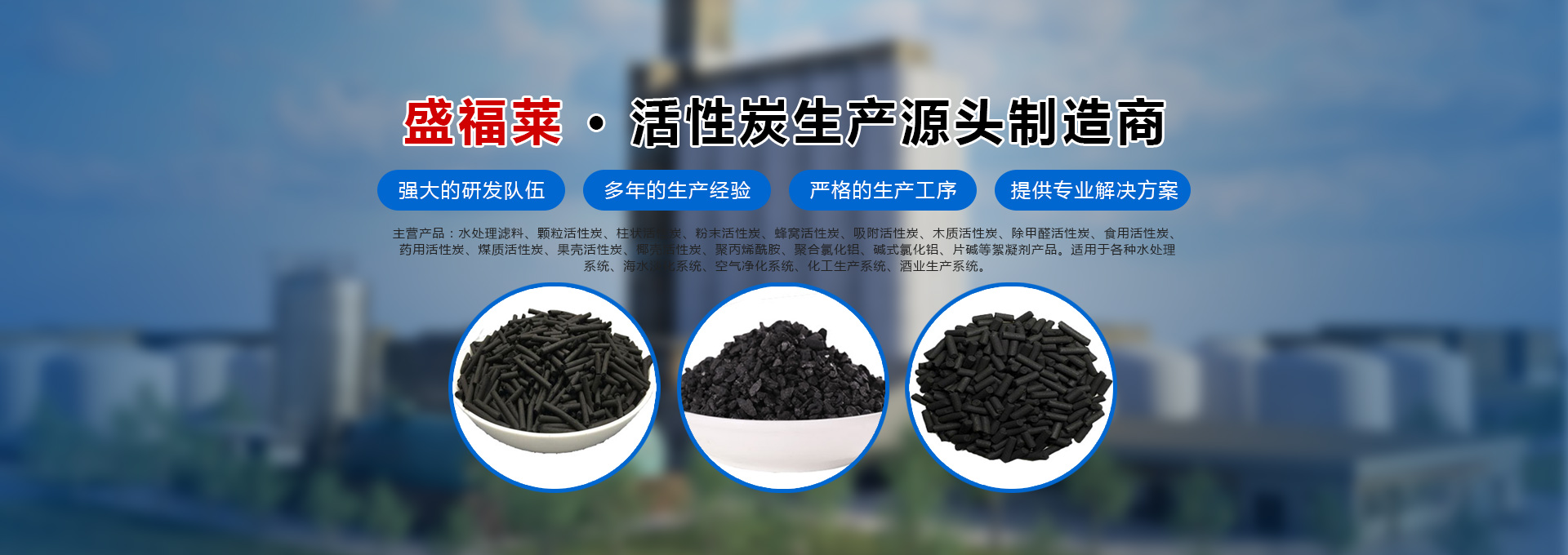 河南盛福萊環??萍加邢薰臼且患覍I銷售各種規格型號活性炭、污水處理藥劑、碳源的公司,位于中原凈水材料基地-鞏義市,是從事各類活性炭及相關產品生產、研發及銷售的一體化企業。主營產品:水處理濾料、顆?;钚蕴?、柱狀活性炭、粉末活性炭、蜂窩活性炭、吸附活性炭、木質活性炭、除甲醛活性炭、食用活性炭、藥用活性炭、煤質活性炭、果殼活性炭、椰殼活性炭、聚丙烯酰胺、聚合氯化鋁、堿式氯化鋁等絮凝劑產品、碳源,適用于各種水處理系統、海水淡化系統、空氣凈化系統、化工生產系統、酒業生產系統。服務于各種大、中、小型自來水廠、石油化工廠、造紙印染廠、鋼鐵廠、發電廠、食品廠、冶金廠等行業。河南盛福萊環??萍加邢薰緞摿⒁詠?